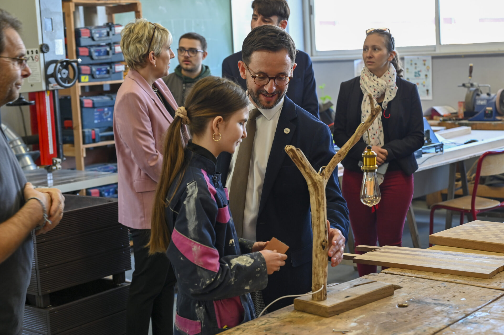 Réalisation de lampes à partir de troncs récupérés, création d’un échiquier en marqueterie avec des pions en impression 3D… Les projets ne manquent pas à l’atelier menuiserie, où les jeunes créent des objets destinés à la vente. Ici, la technique se mêle à l’art pour former de véritables artisans.