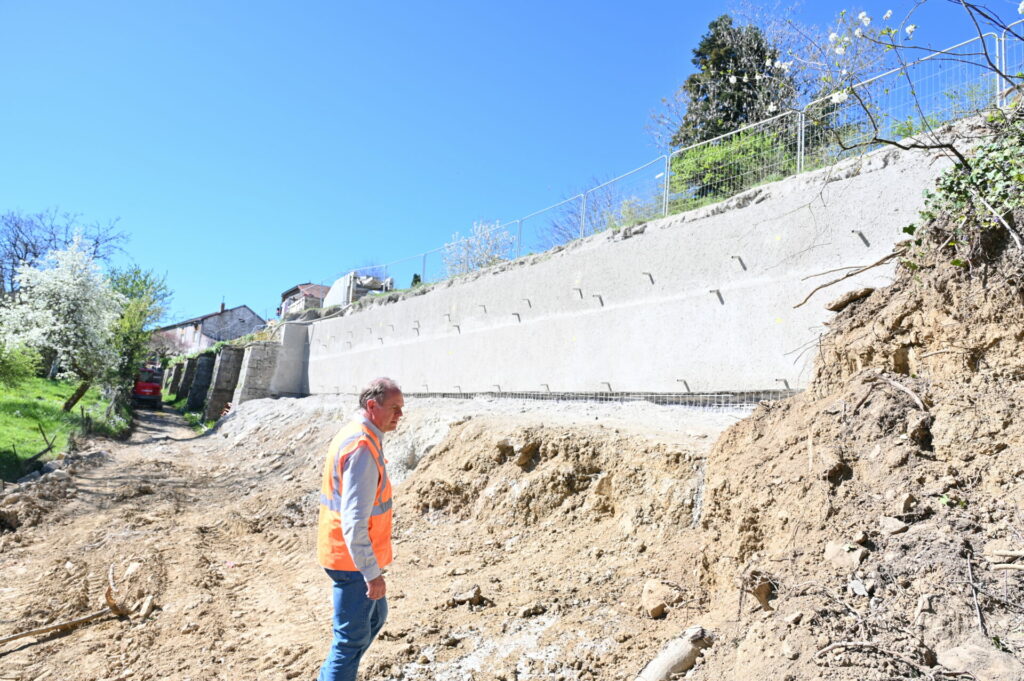 Depuis mars , le Conseil départemental procède à la reconstruction d’une section de 29 mètres du mur de soutènement, comprenant la réalisation d’une paroi clouée , la reprise de la chaussée et des accotements, ainsi que la gestion des eaux pluviales.