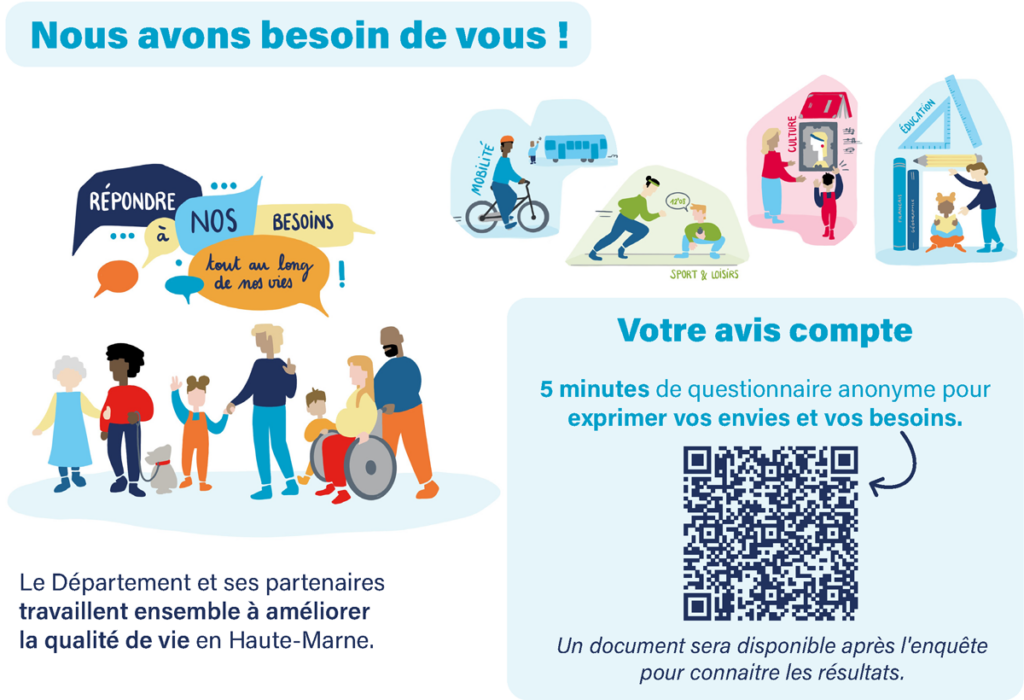 Parce que la solidarité se construit avec celles et ceux qui la vivent, le Département ouvre également une enquête citoyenne en ligne, accessible à l’ensemble des Haut-Marnais. Chaque habitant est donc invité à s’exprimer, à partager son vécu et ses priorités pour l’avenir du territoire. Les contributions recueillies viendront directement nourrir le diagnostic et les orientations du Schéma global des solidarités 2027–2030.