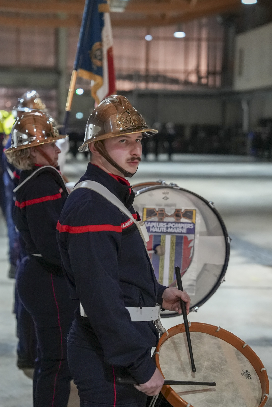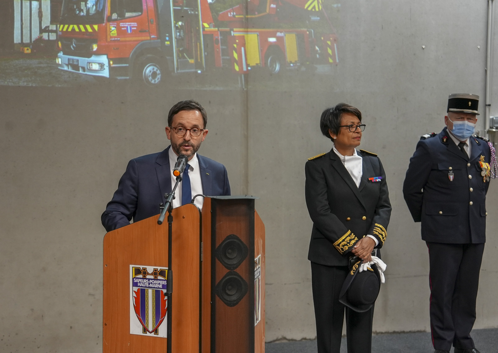 Nicolas Lacroix, Président du Département et Président du SDIS, en compagnie de Mme Régine Pam, Préfète de la Haute-Marne et le Colonel Ralph Jeser, directeur départemental du SDIS, ont assisté à la cérémonie et participé à la remise des décorations aux sapeurs-pompiers.